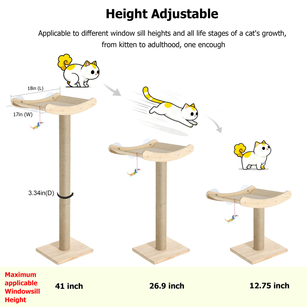 - 4.Adjustable Height: With a total height of 46 inches, this cat window tree is designed to accommodate various window sizes by remove or add posts. Adjust the height to create the perfect window perch for your cat, allowing them to relax comfortably while observing their surroundings.